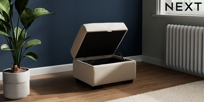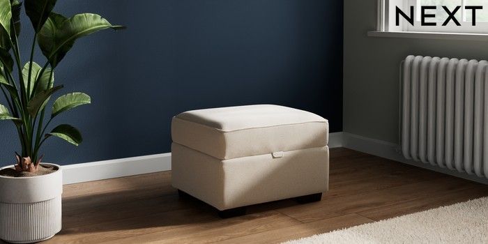 7.2.10 Michigan II Storage Footstool Studio Chenille Oyster Small Slim Block - Dark | Made Click here to use our website with more accessibility support, for example screen readers
