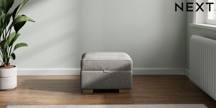 7.2.10 Michigan II Storage Footstool Tweedy Chenille Mid Grey Small Slim Block - Light | Made Click here to use our website with more accessibility support, for example screen readers