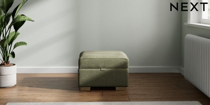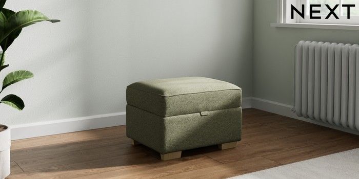 7.2.10 Michigan II Storage Footstool Tweedy Chenille Mid Moss Green Small Slim Block - Light | Made Click here to use our website with more accessibility support, for example screen readers