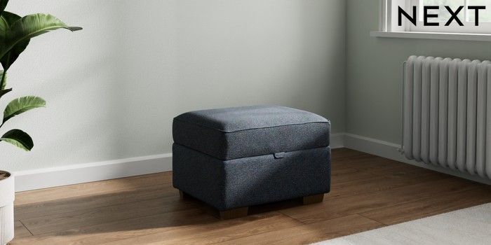 7.2.10 Michigan II Storage Footstool Tweedy Chenille Navy Blue Small Slim Block - Mid | Made Click here to use our website with more accessibility support, for example screen readers
