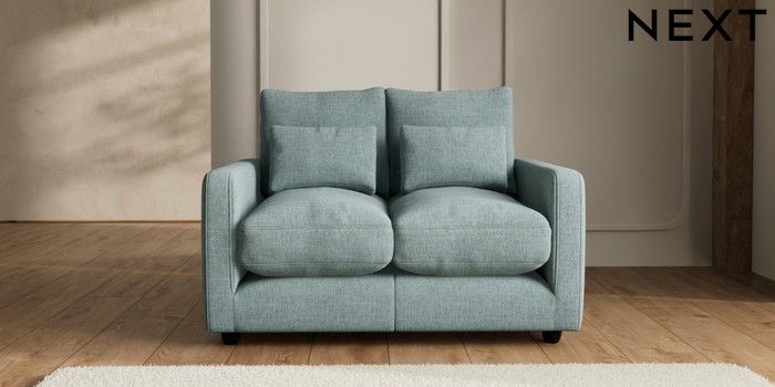 7.2.10 N Premium Farndon Grand Relaxed Sit 2 Seater Small Sofa Chunky Chenille Light Teal Green Wooden Glide - Dark | Made Click here to use our website with more accessibility support, for example screen readers