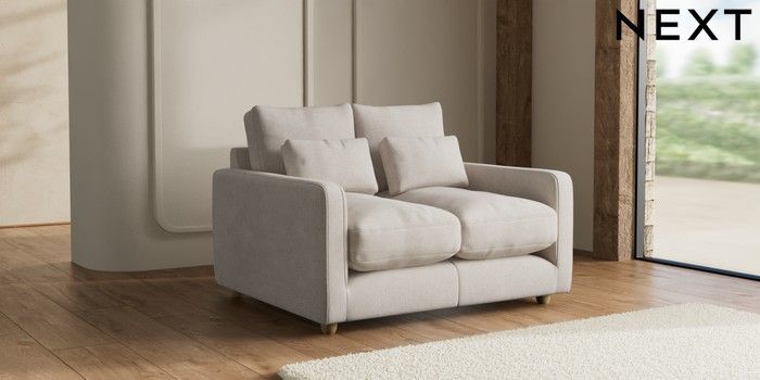 7.2.10 N Premium Farndon Grand Relaxed Sit 2 Seater Small Sofa Chunky Chenille Oyster Wooden Glide - Light | Made Click here to use our website with more accessibility support, for example screen readers