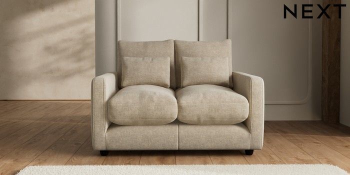 7.2.10 N Premium Farndon Grand Relaxed Sit 2 Seater Small Sofa Chunky Weave Cream Wooden Glide - Dark | Made Click here to use our website with more accessibility support, for example screen readers