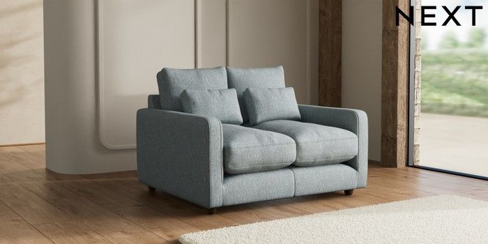 7.2.10 N Premium Farndon Grand Relaxed Sit 2 Seater Small Sofa Chunky Weave Mid Blue Wooden Glide - Mid | Made Click here to use our website with more accessibility support, for example screen readers