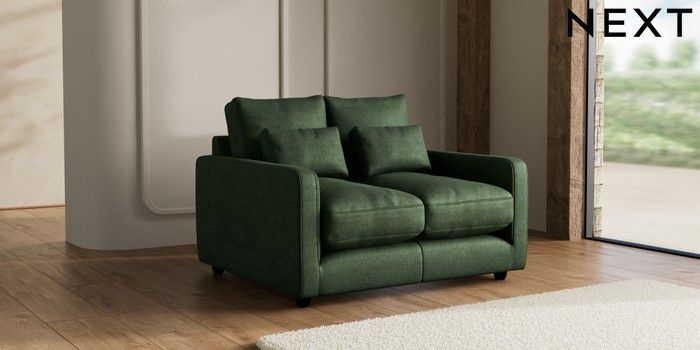 7.2.10 N Premium Farndon Grand Relaxed Sit 2 Seater Small Sofa Luxe Chenille Dark Green Wooden Glide - Dark | Made Click here to use our website with more accessibility support, for example screen readers