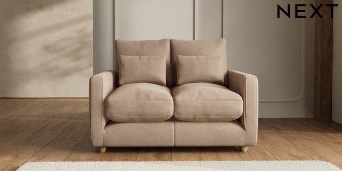 7.2.10 N Premium Farndon Grand Relaxed Sit 2 Seater Small Sofa Luxe Chenille Mid Natural Wooden Glide - Light | Made Click here to use our website with more accessibility support, for example screen readers