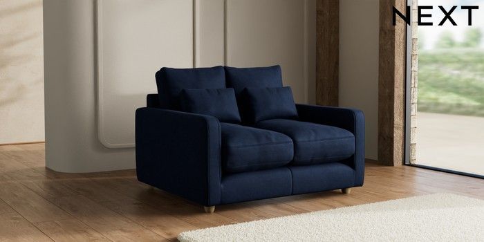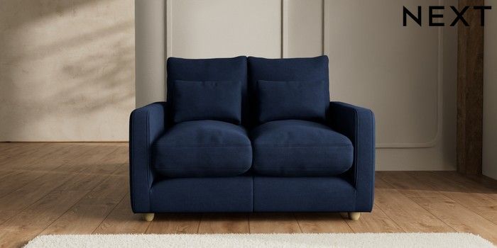 7.2.10 N Premium Farndon Grand Relaxed Sit 2 Seater Small Sofa Luxe Chenille Navy Blue Wooden Glide - Light | Made Click here to use our website with more accessibility support, for example screen readers