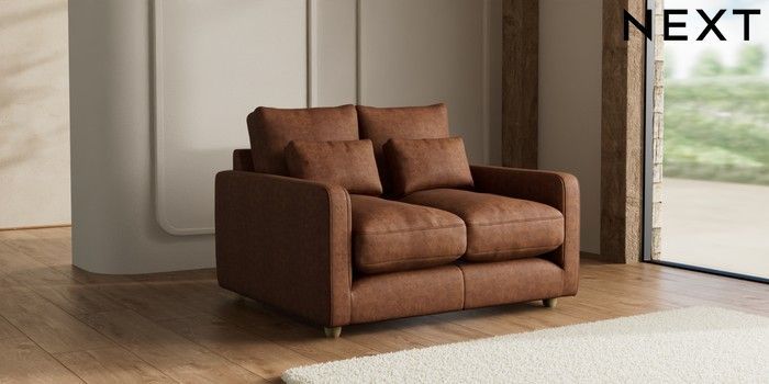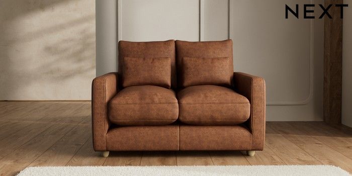 7.2.10 N Premium Farndon Grand Relaxed Sit 2 Seater Small Sofa Monza Faux Leather Easy Clean Chestnut Brown Wooden Glide - Light | Made Click here to use our website with more accessibility support, for example screen readers