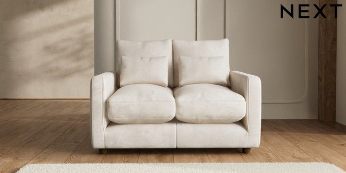 7.2.10 N Premium Farndon Grand Relaxed Sit 2 Seater Small Sofa Plush Chenille Oyster Wooden Glide - Mid | Made Click here to use our website with more accessibility support, for example screen readers