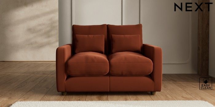 7.2.10 N Premium Farndon Grand Relaxed Sit 2 Seater Small Sofa Plush Velvet Easy Clean Ginger Orange Wooden Glide - Mid | Made Click here to use our website with more accessibility support, for example screen readers