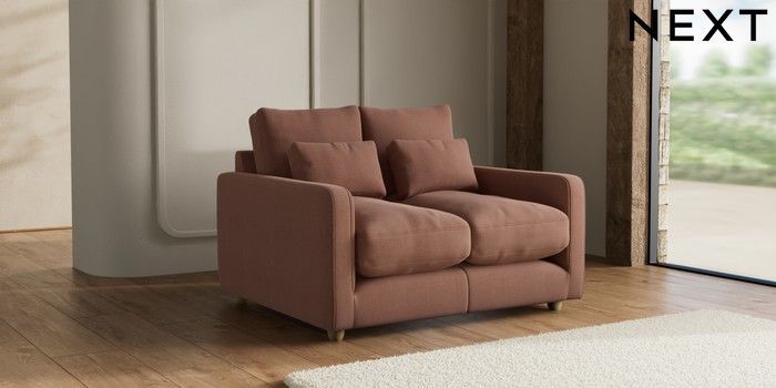 7.2.10 N Premium Farndon Grand Relaxed Sit 2 Seater Small Sofa Relaxed Linen Look Light Rust Brown Wooden Glide - Light | Made Click here to use our website with more accessibility support, for example screen readers
