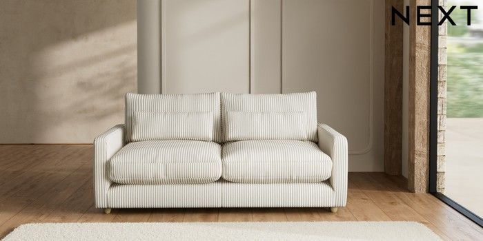 7.2.10 N Premium Farndon Grand Relaxed Sit 3 Seater Sofa Chenille Stripe Moss Green Wooden Glide - Light | Made Click here to use our website with more accessibility support, for example screen readers