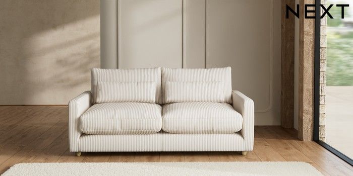 7.2.10 N Premium Farndon Grand Relaxed Sit 3 Seater Sofa Chenille Stripe Natural Wooden Glide - Light | Made Click here to use our website with more accessibility support, for example screen readers