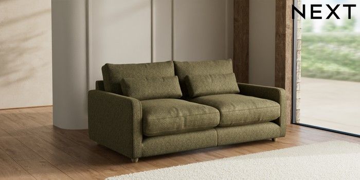 7.2.10 N Premium Farndon Grand Relaxed Sit 3 Seater Sofa Cotswold Chenille Dark Green Wooden Glide - Light | Made Click here to use our website with more accessibility support, for example screen readers