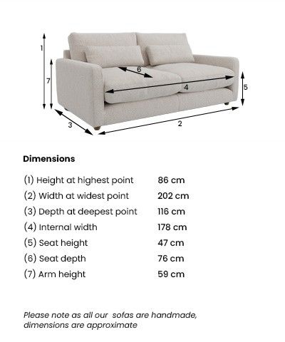 Dimensions:W202 x H86 x D116cm