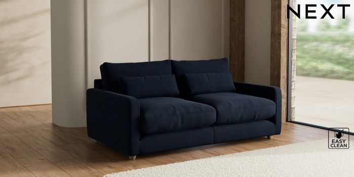 7.2.10 N Premium Farndon Grand Relaxed Sit 3 Seater Sofa Fine Chenille Easy Clean Dark Navy Blue Wooden Glide - Light | Made Click here to use our website with more accessibility support, for example screen readers