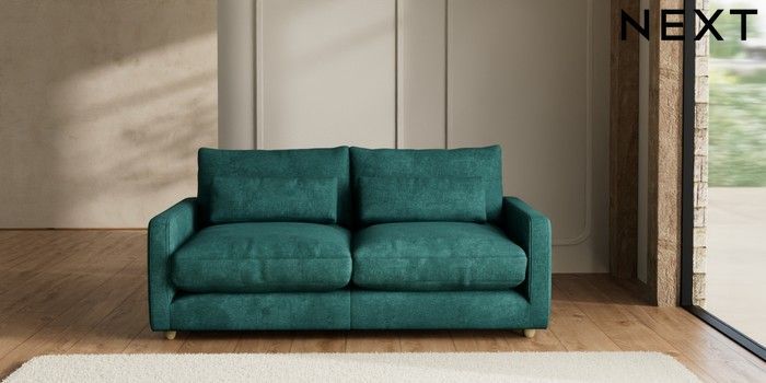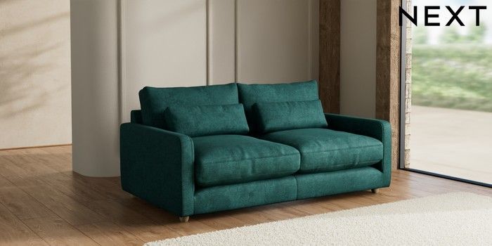 7.2.10 N Premium Farndon Grand Relaxed Sit 3 Seater Sofa Plush Chenille Dark Teal Green Wooden Glide - Light | Made Click here to use our website with more accessibility support, for example screen readers