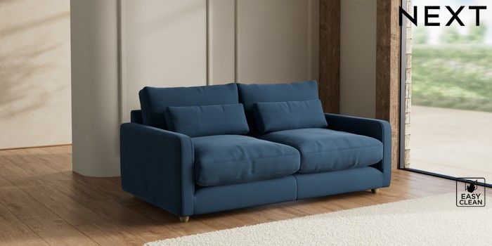 7.2.10 N Premium Farndon Grand Relaxed Sit 3 Seater Sofa Plush Velvet Easy Clean Airforce Blue Wooden Glide - Light | Made Click here to use our website with more accessibility support, for example screen readers