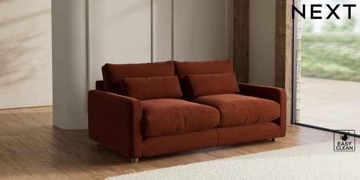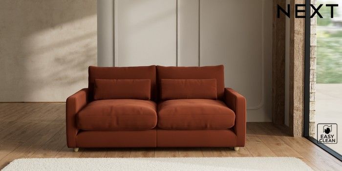 7.2.10 N Premium Farndon Grand Relaxed Sit 3 Seater Sofa Plush Velvet Easy Clean Ginger Orange Wooden Glide - Light | Made Click here to use our website with more accessibility support, for example screen readers