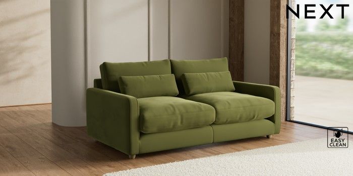 7.2.10 N Premium Farndon Grand Relaxed Sit 3 Seater Sofa Plush Velvet Easy Clean Mid Olive Green Wooden Glide - Light | Made Click here to use our website with more accessibility support, for example screen readers