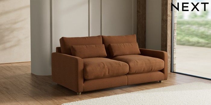7.2.10 N Premium Farndon Grand Relaxed Sit 3 Seater Sofa Ripple Chenille Mid Rust Brown Wooden Glide - Light | Made Click here to use our website with more accessibility support, for example screen readers