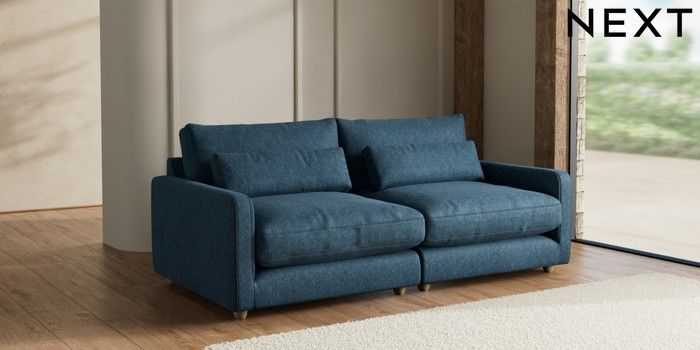 7.2.10 N Premium Farndon Grand Relaxed Sit 4 Seater Sofa Cotswold Chenille Dark Blue Wooden Glide - Light | Made Click here to use our website with more accessibility support, for example screen readers