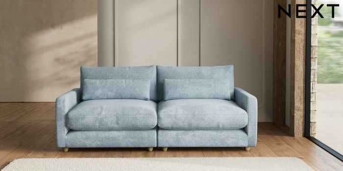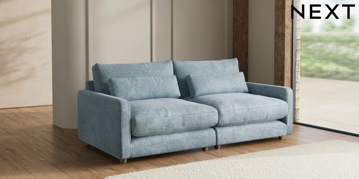 7.2.10 N Premium Farndon Grand Relaxed Sit 4 Seater Sofa Plush Chenille Light Blue Wooden Glide - Light | Made Click here to use our website with more accessibility support, for example screen readers