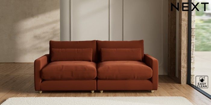 7.2.10 N Premium Farndon Grand Relaxed Sit 4 Seater Sofa Plush Velvet Easy Clean Ginger Orange Wooden Glide - Light | Made Click here to use our website with more accessibility support, for example screen readers