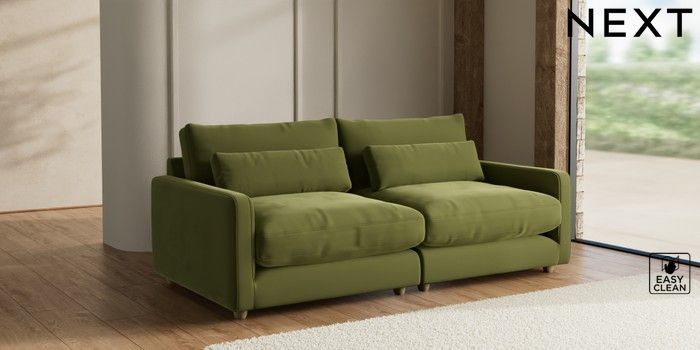 7.2.10 N Premium Farndon Grand Relaxed Sit 4 Seater Sofa Plush Velvet Easy Clean Mid Olive Green Wooden Glide - Light | Made Click here to use our website with more accessibility support, for example screen readers