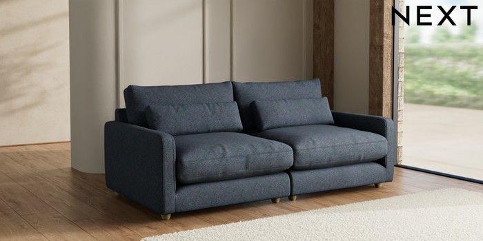7.2.10 N Premium Farndon Grand Relaxed Sit 4 Seater Sofa Tweedy Chenille Navy Blue Wooden Glide - Light | Made Click here to use our website with more accessibility support, for example screen readers