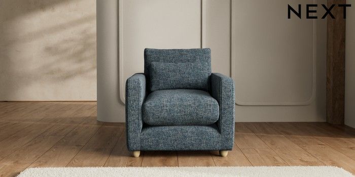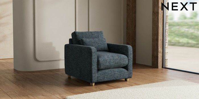 7.2.10 N Premium Farndon Grand Relaxed Sit Armchair Chunky Chenille Dark Navy Blue Wooden Glide - Light | Made Click here to use our website with more accessibility support, for example screen readers
