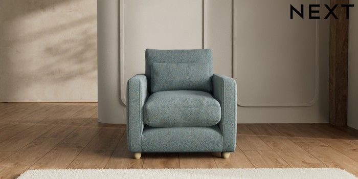 7.2.10 N Premium Farndon Grand Relaxed Sit Armchair Chunky Marl Mid Blue Wooden Glide - Light | Made Click here to use our website with more accessibility support, for example screen readers
