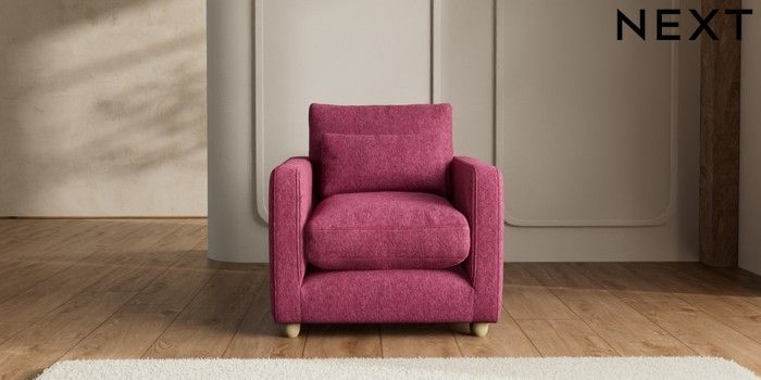 7.2.10 N Premium Farndon Grand Relaxed Sit Armchair Cotswold Chenille Dark Raspberry Pink Wooden Glide - Light | Made Click here to use our website with more accessibility support, for example screen readers