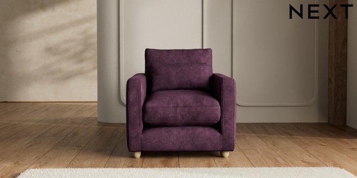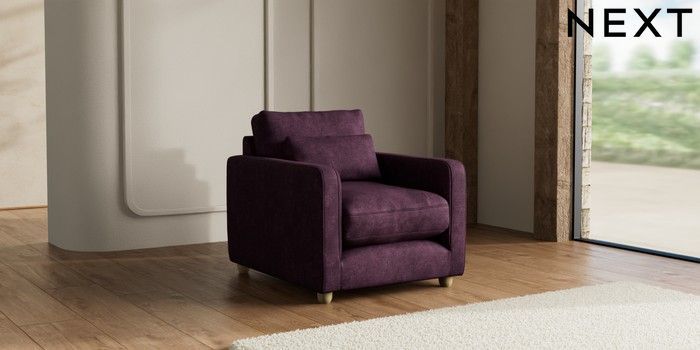 7.2.10 N Premium Farndon Grand Relaxed Sit Armchair Plush Chenille Dark Plum Purple Wooden Glide - Light | Made Click here to use our website with more accessibility support, for example screen readers