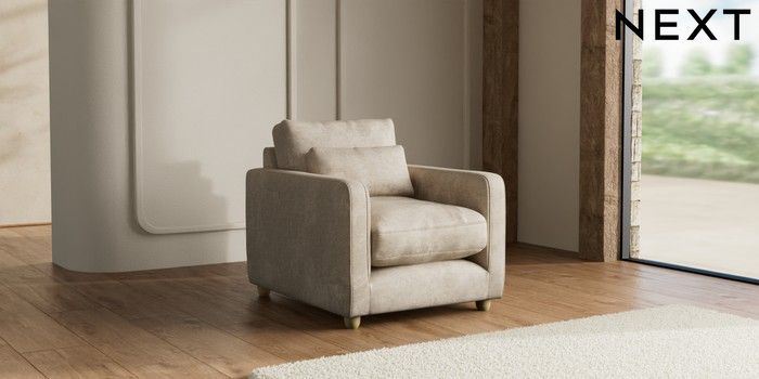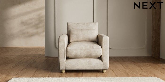 7.2.10 N Premium Farndon Grand Relaxed Sit Armchair Plush Chenille Light Natural Wooden Glide - Light | Made Click here to use our website with more accessibility support, for example screen readers