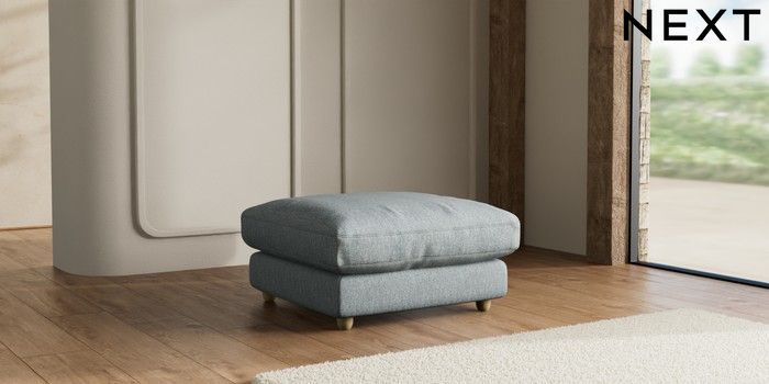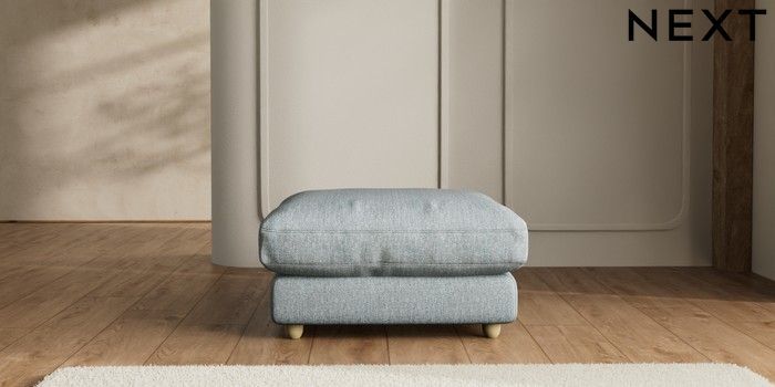 7.2.10 N Premium Farndon Grand Relaxed Sit Extra Large Footstool Chunky Weave Mid Blue Wooden Glide - Light | Made Click here to use our website with more accessibility support, for example screen readers