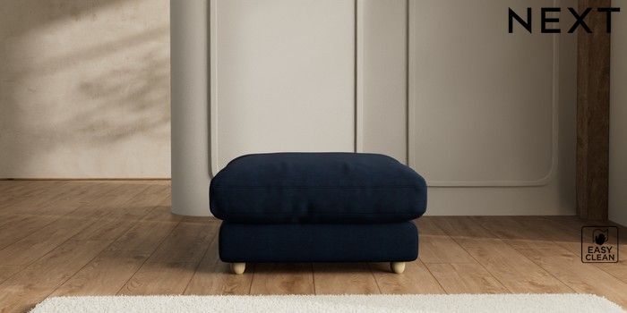 7.2.10 N Premium Farndon Grand Relaxed Sit Extra Large Footstool Fine Chenille Easy Clean Dark Navy Blue Wooden Glide - Light | Made Click here to use our website with more accessibility support, for example screen readers