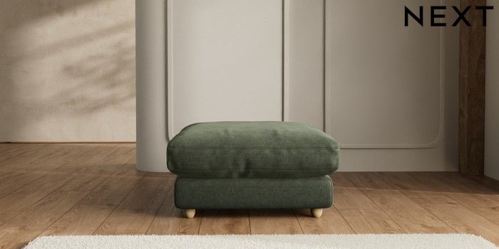 7.2.10 N Premium Farndon Grand Relaxed Sit Extra Large Footstool Luxe Chenille Mid Green Wooden Glide - Light | Made Click here to use our website with more accessibility support, for example screen readers