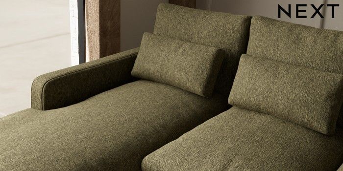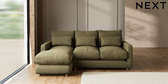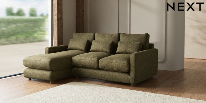 7.2.10 N Premium Farndon Grand Relaxed Sit Medium Sofa Chaise - Left Hand Cotswold Chenille Dark Green Wooden Glide - Light | Made Click here to use our website with more accessibility support, for example screen readers