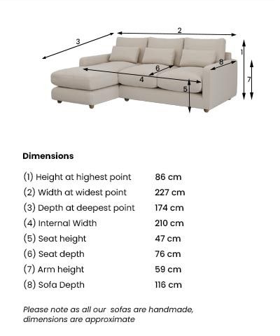 All our sofas are made from hardwood frames and most of them have supportive sprung bases combined with high density seat foam and deep filled back cushions to keep you feeling comfy no matter how long you lounge. Some of our chaise end pieces within our corners sofas have webbed based suspension that provides the best sit when clipped to the sprung based suspension one armed sofa piece.