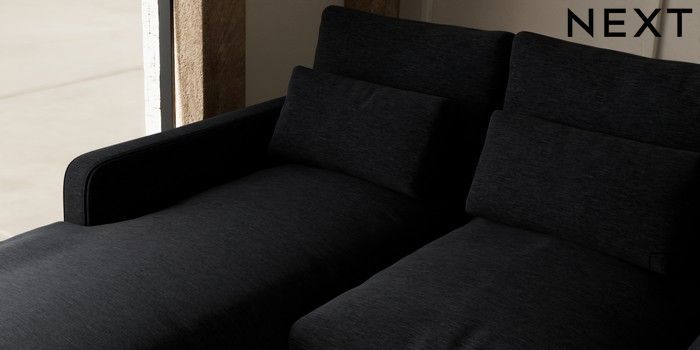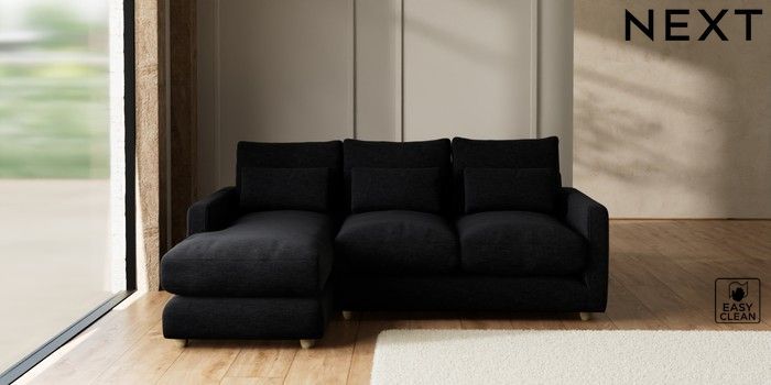 7.2.10 N Premium Farndon Grand Relaxed Sit Medium Sofa Chaise - Left Hand Fine Chenille Easy Clean Black Wooden Glide - Light | Made Click here to use our website with more accessibility support, for example screen readers