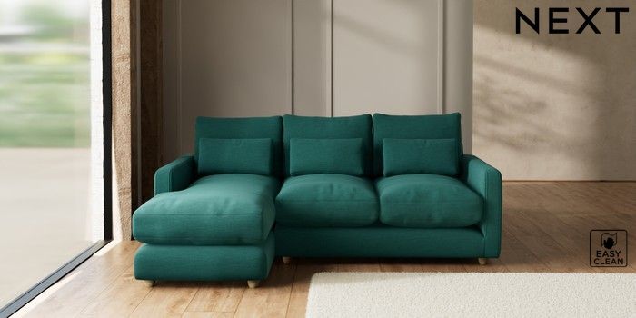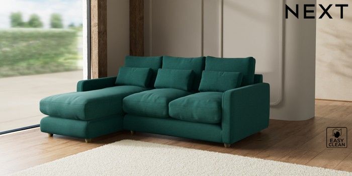 7.2.10 N Premium Farndon Grand Relaxed Sit Medium Sofa Chaise - Left Hand Fine Chenille Easy Clean Dark Juniper Green Wooden Glide - Light | Made Click here to use our website with more accessibility support, for example screen readers