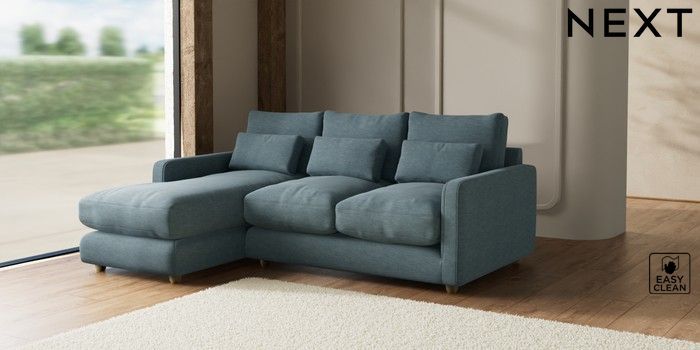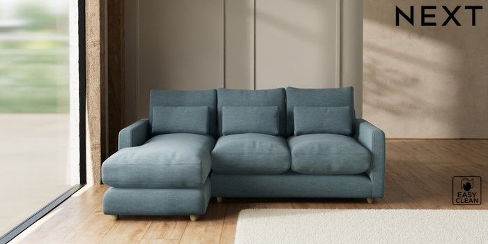 7.2.10 N Premium Farndon Grand Relaxed Sit Medium Sofa Chaise - Left Hand Fine Chenille Easy Clean Mid Blue Wooden Glide - Light | Made Click here to use our website with more accessibility support, for example screen readers