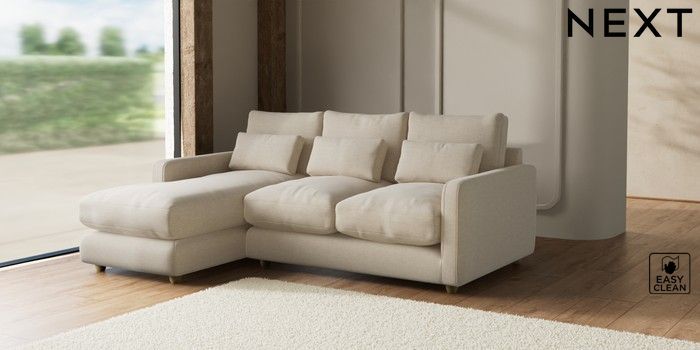 7.2.10 N Premium Farndon Grand Relaxed Sit Medium Sofa Chaise - Left Hand Fine Chenille Easy Clean Oyster Wooden Glide - Light | Made Click here to use our website with more accessibility support, for example screen readers