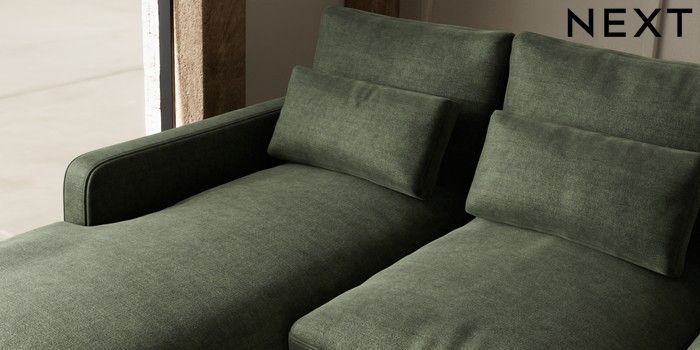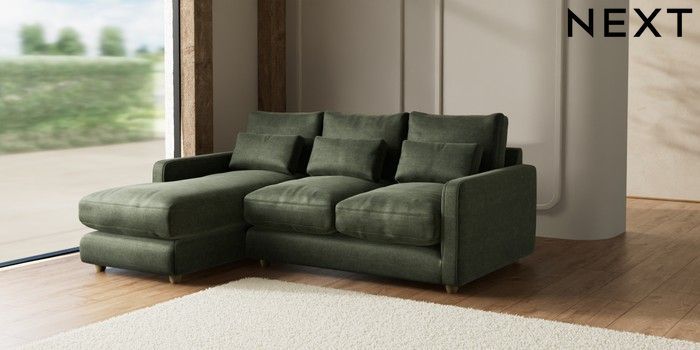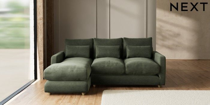 7.2.10 N Premium Farndon Grand Relaxed Sit Medium Sofa Chaise - Left Hand Luxe Chenille Mid Green Wooden Glide - Light | Made Click here to use our website with more accessibility support, for example screen readers