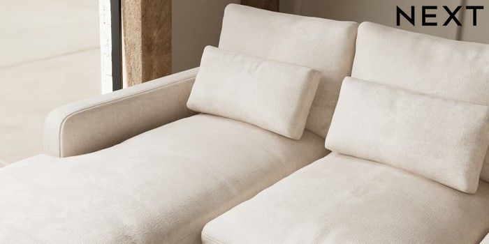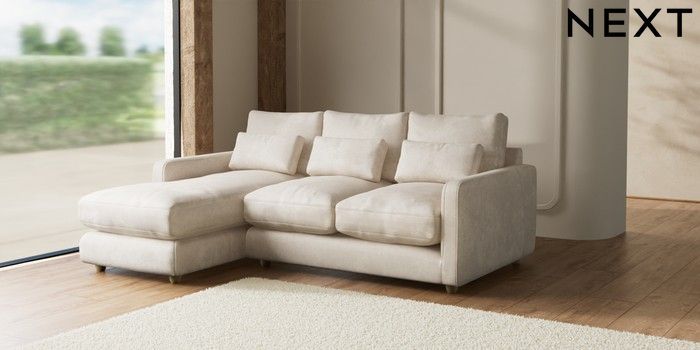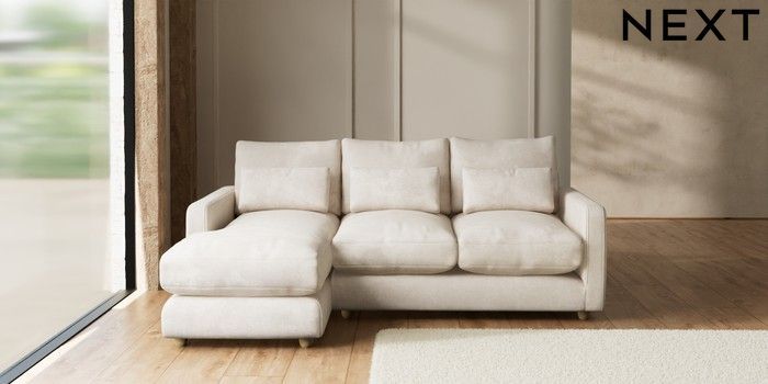 7.2.10 N Premium Farndon Grand Relaxed Sit Medium Sofa Chaise - Left Hand Plush Chenille Oyster Wooden Glide - Light | Made Click here to use our website with more accessibility support, for example screen readers