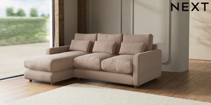 7.2.10 N Premium Farndon Grand Relaxed Sit Medium Sofa Chaise - Left Hand Relaxed Linen Look Mid Natural Wooden Glide - Light | Made Click here to use our website with more accessibility support, for example screen readers