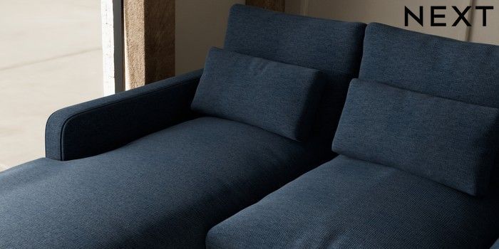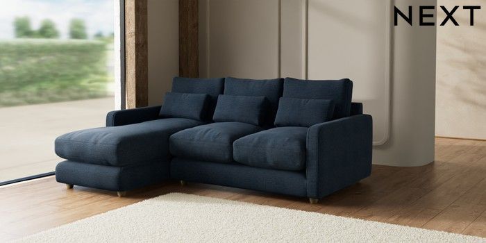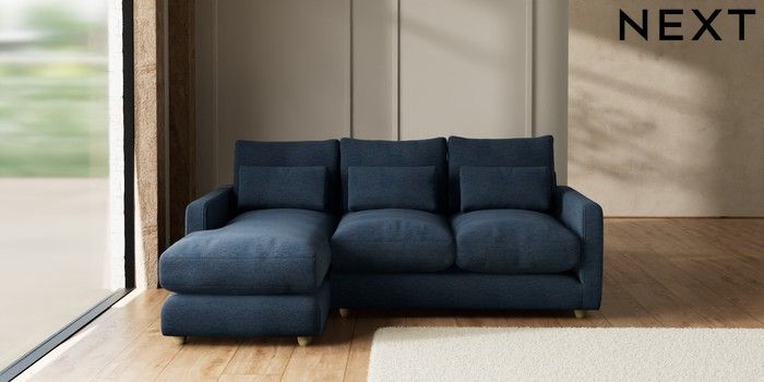 7.2.10 N Premium Farndon Grand Relaxed Sit Medium Sofa Chaise - Left Hand Ripple Chenille Dark Blue Wooden Glide - Light | Made Click here to use our website with more accessibility support, for example screen readers