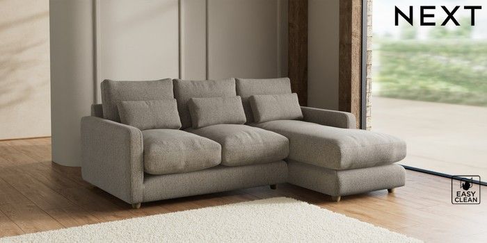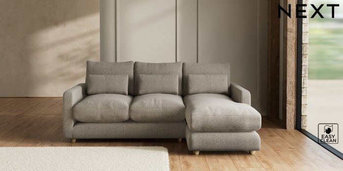 7.2.10 N Premium Farndon Grand Relaxed Sit Medium Sofa Chaise - Right Hand Chunky Boucle Easy Clean Dove Wooden Glide - Light | Made Click here to use our website with more accessibility support, for example screen readers