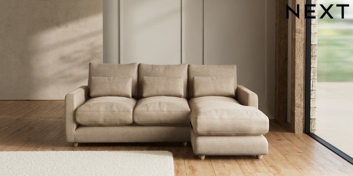 7.2.10 N Premium Farndon Grand Relaxed Sit Medium Sofa Chaise - Right Hand Luxe Chenille Mid Camel Beige Wooden Glide - Light | Made Click here to use our website with more accessibility support, for example screen readers